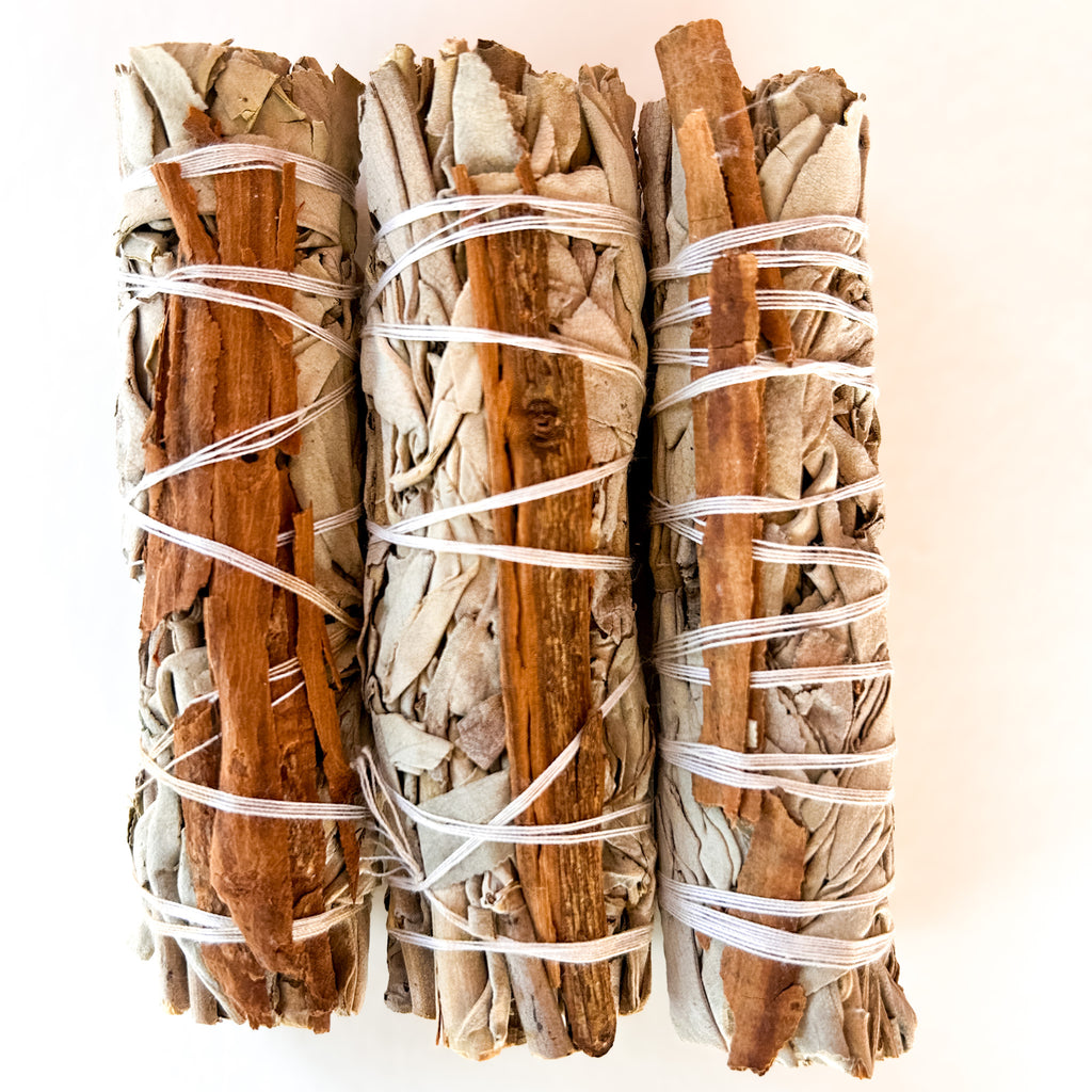 Elevate any space with our White Sage and Cinnamon 4-inch Smudge Sticks. Expertly crafted, each order includes 3 smudge sticks that combine the healing and protective properties of white sage with the added benefits of cinnamon - love and purification. Create a luxurious and purified atmosphere with one simple ritual.